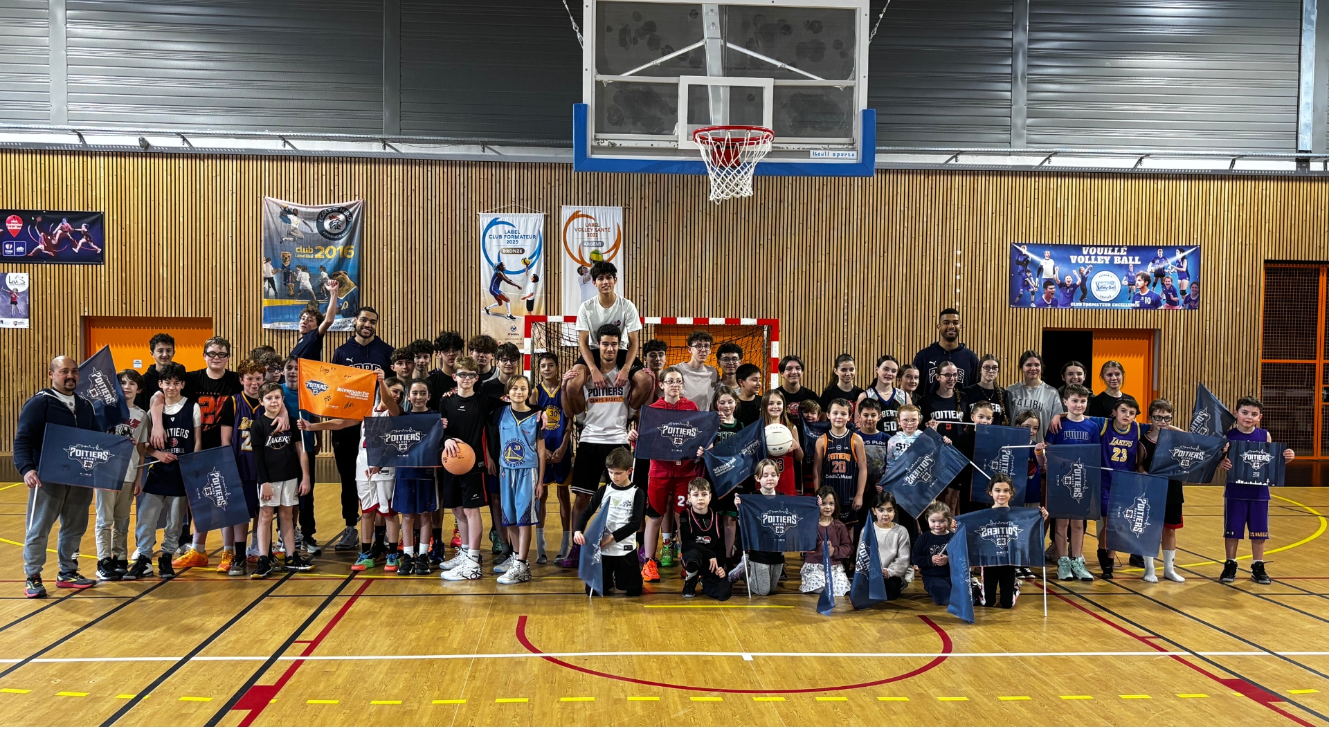 Les participants ont eu l’opportunité de partager ce moment aux côtés de Guillaume Eyango et Jordan Ratton, joueurs du Poitiers Basket 86, présents pour accompagner les jeunes tout au long de la séance.
