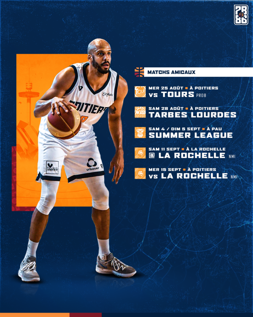 S’enchaînera ensuite la Summer League Nouvelle Aquitaine à Pau, lors du week-end des 4 et 5 septembre. Nos joueurs devraient y retrouver l’équipe de Limoges (Betclic Elite), celle de Pau (Betclic Elite) et celle de Boulazac (ProB).