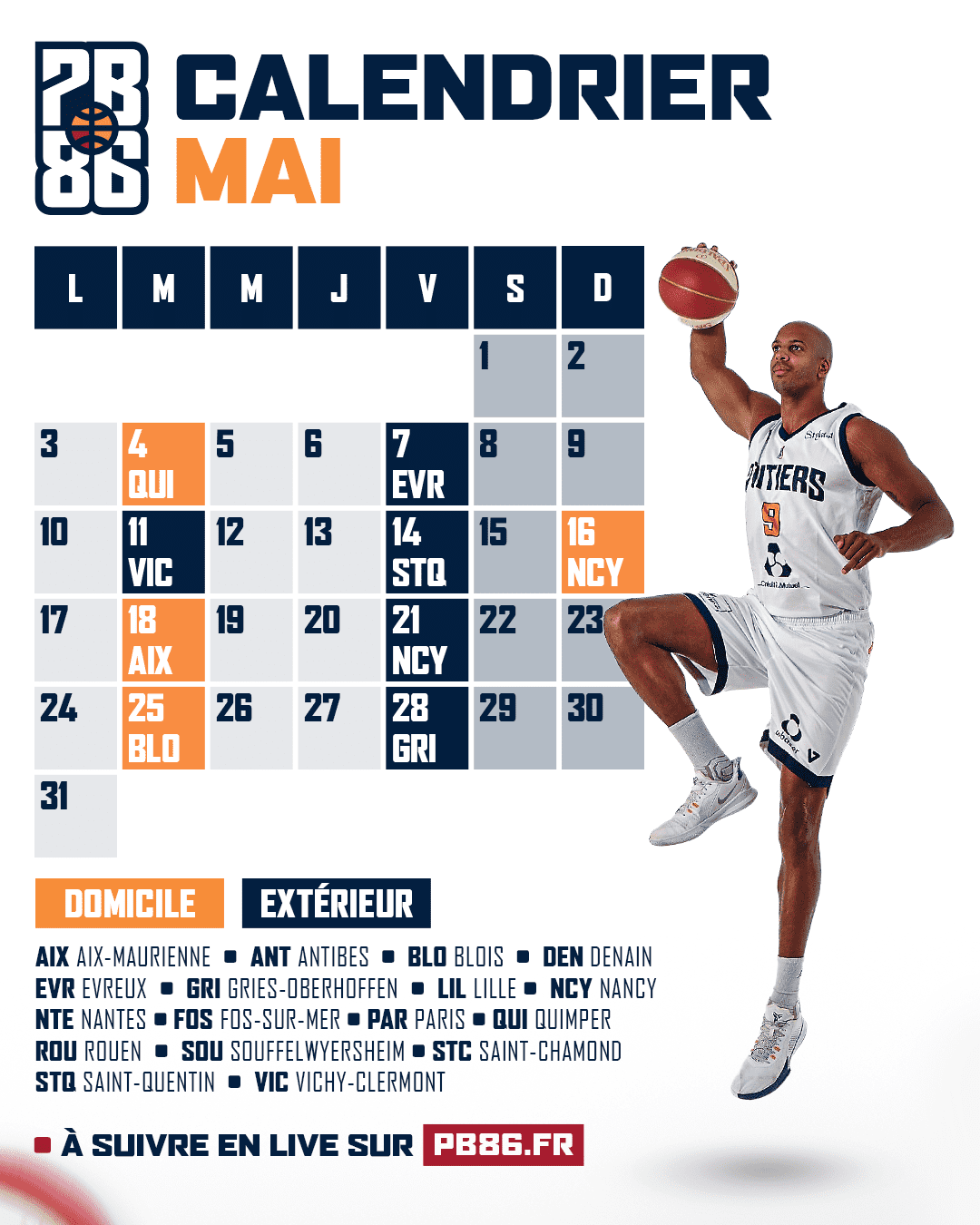 Tous les matchs seront à suivre en direct sur PB86.fr. Les matchs à domicile seront retransmis à travers notre dispositif multi-caméras commenté.