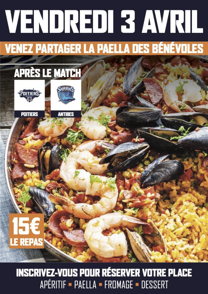 Profitez d’un moment convivial après une bonne soirée basket, avec tous les bénévoles du club, les joueurs et le staff sportif ! > Réservez votre repas (15€) auprès des bénévoles les soirs de match ou auprès d’Eric Bergerot (e.bergerot@pb86.fr)